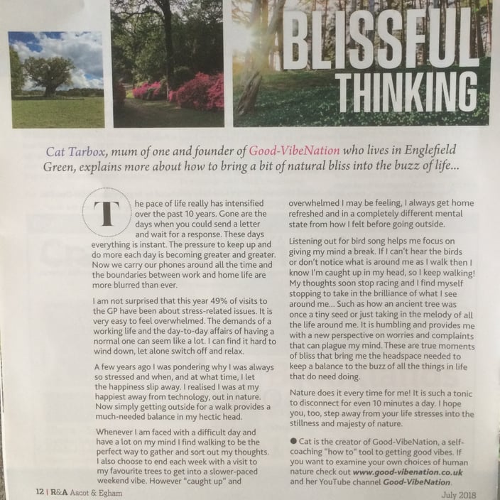 BIG thanks to Round & About magazine for publishing my first article in July 2018 edition. - especially to the lovely @lizxnic 🌲🌳💭☀️#naturedoesiteverytime #balance#headspace #switchoff #disconnect#goodvibes #recharge #mentalhealth#avoidoverwhelm #anxiety #anxietyrelief#aswithinsowithout #windsorgreatpark#roundandaboutmagazine #sharing simple #selfcoachingtips #wellbeing